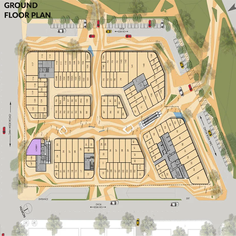 - Connectivity & Convenience: The site is easily accessible and is at the intersection of the 150 mtr wide peripheral road and the 84 mtr. sector road