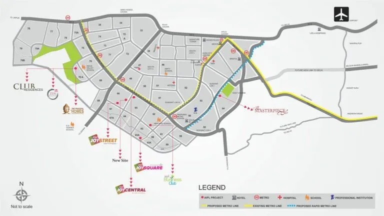 - Striking Location: Strategically located in Sector 63A, Gurugram. AIPL Joy Square enjoys easy connectivity and accessibility from Golf Course Extension Road.Excellent catchment includes Township and group housing development & large working population from IT SEZs in the vicinity.
