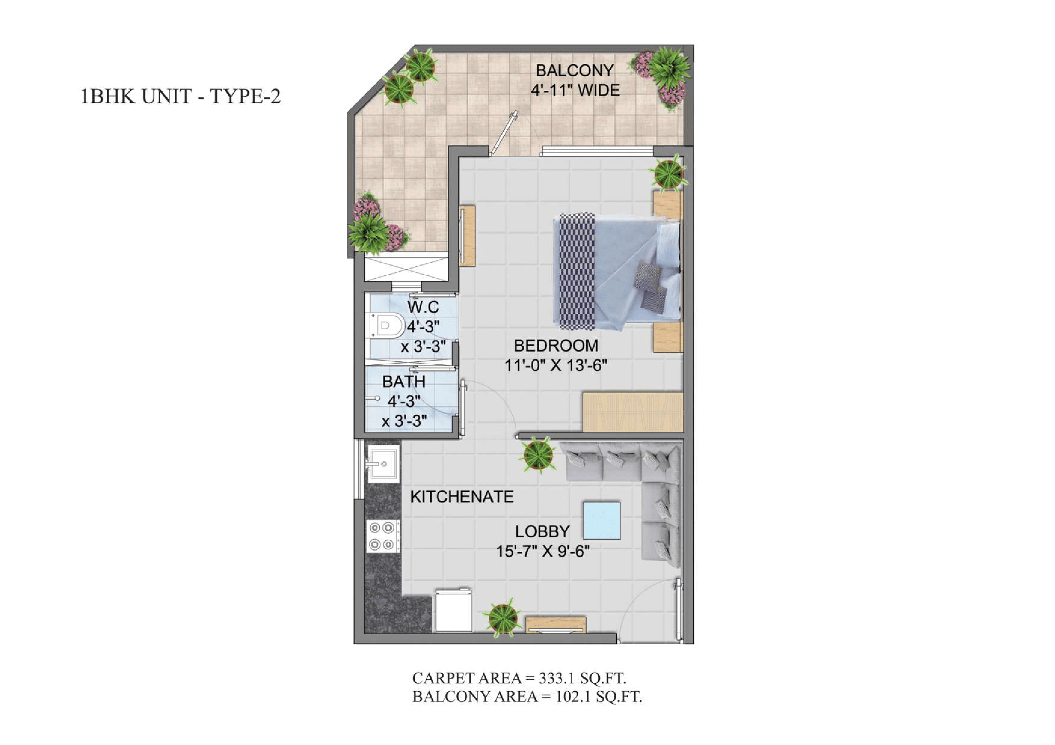 | 2 | 2 BHK TYPE 2 | 553 | 102 | 22,62,562 | 1,13,128 |