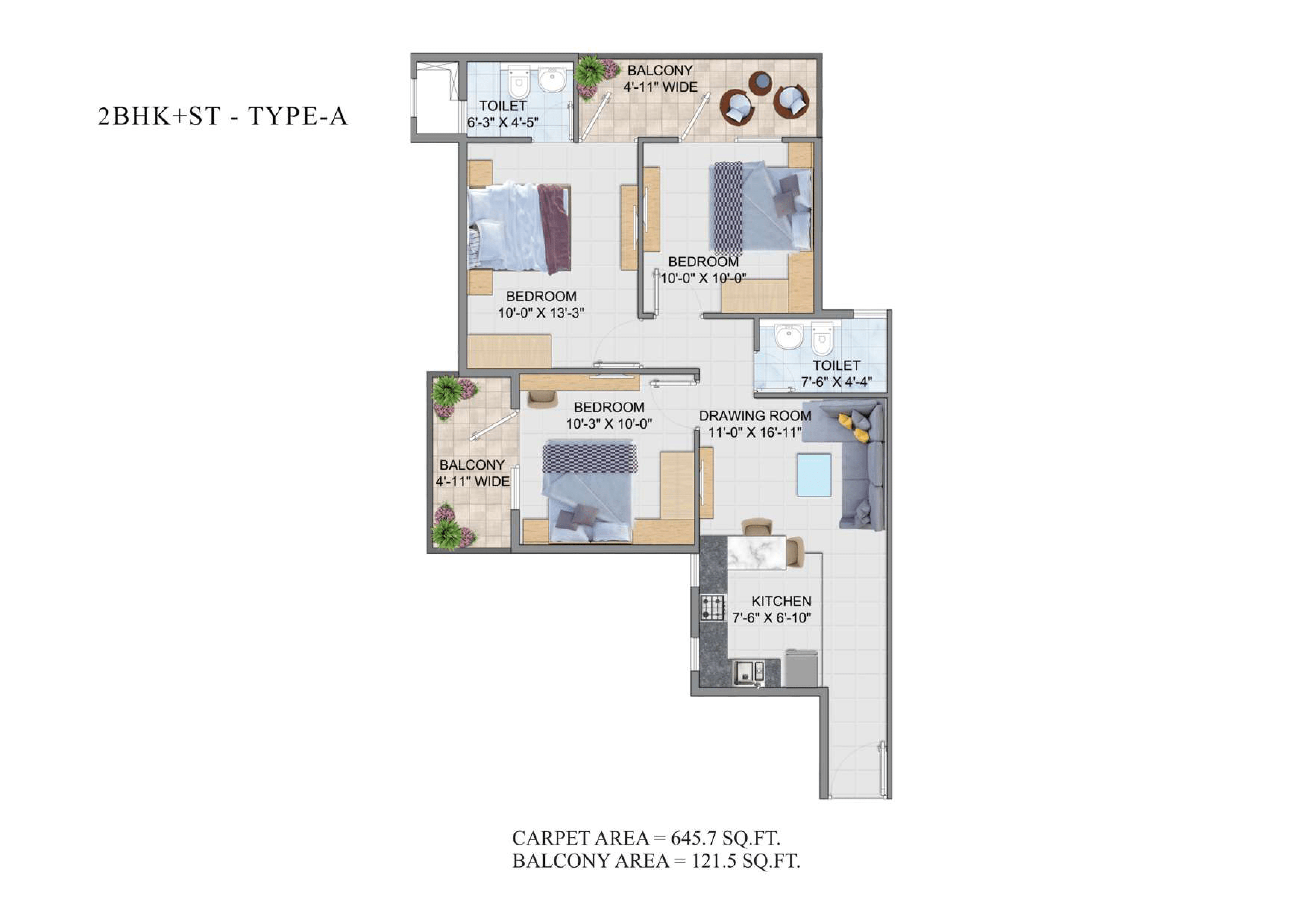 | 4 | 3 BHK TYPE 1 | 645 | 98 | 26,32,840 | 1,31,625 |