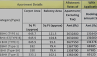 | 1 | 2 BHK TYPE 1 | 551 | 83 | 22,49,581 | 1,12,479 |