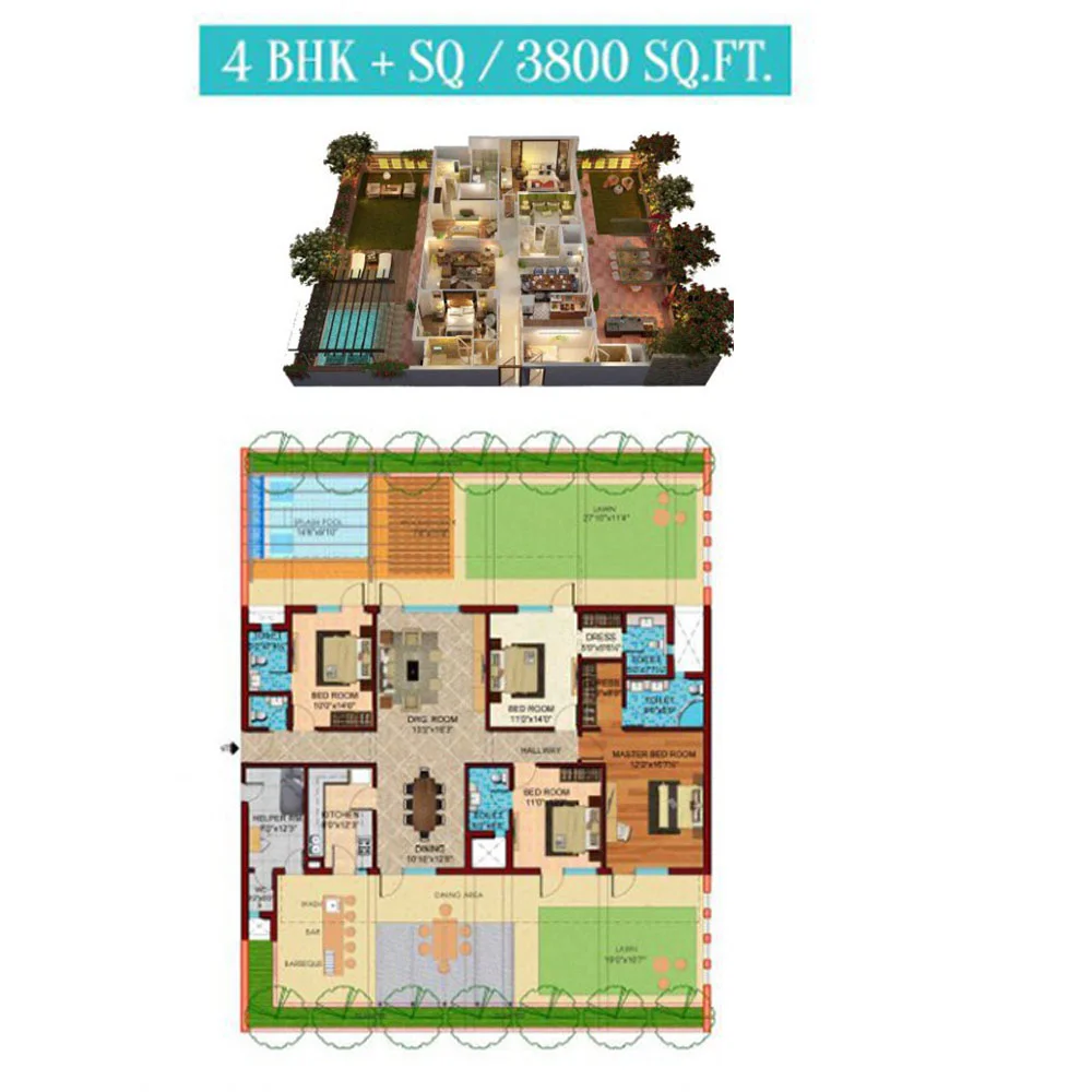 In addition to these, the luxurious township also has fast-speed lifts, internal roads, and community halls for special occasion, open dining spaces, private swimming pool and Jacuzzis, jogging tracks, latest security gadgets, all sorts of safety measures as well as water and power back for an uninterrupted living.