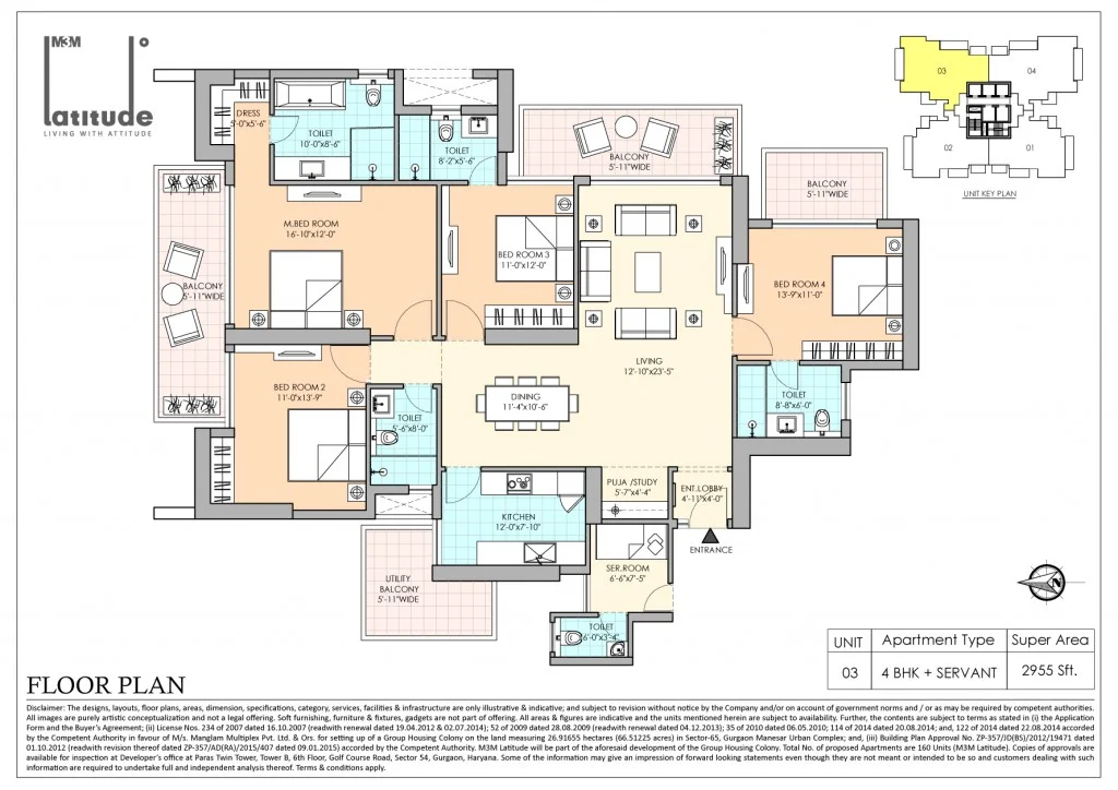 After delivering a host of luxurious residential Apartments in Gurgaon, M3M Group launches yet another high class housing project – M3M Latitude in Sector 65 on Sohna Road in Gurugram that defines modernity and elegance. A 42 story building spread over 2 acres of expansive land area, the residential complex offers exclusively designed and contemporarily furnished 3 & 4 BHK apartments at affordable prices.