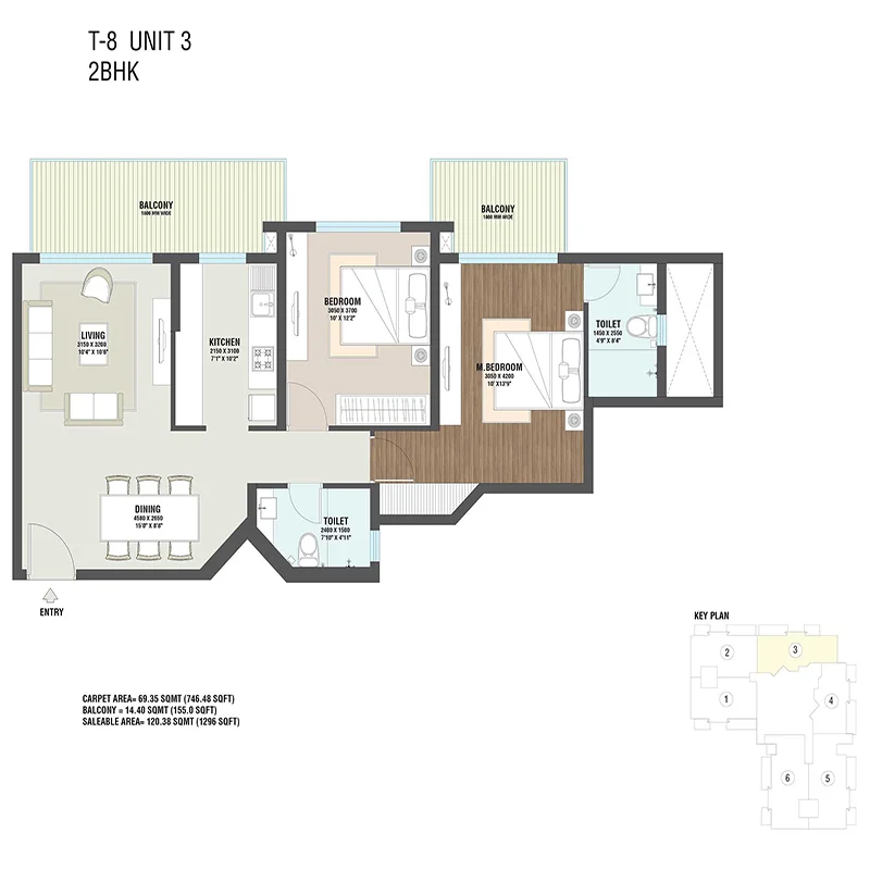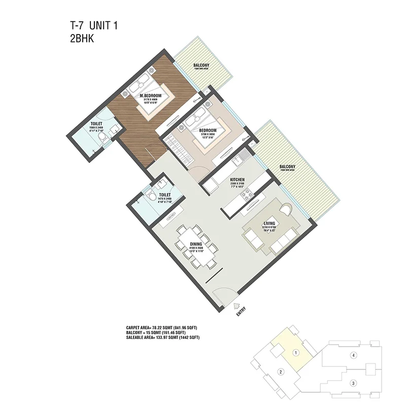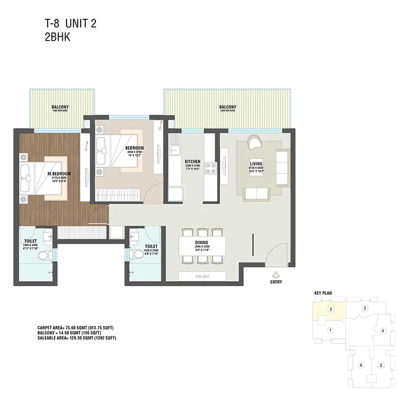 | 2 BHK | 1296/1310/1392/1404/1442 | 5000 |