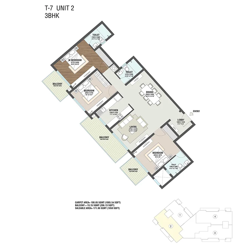 | 3 BHK + SQ | 2018/2424 | 5000 |