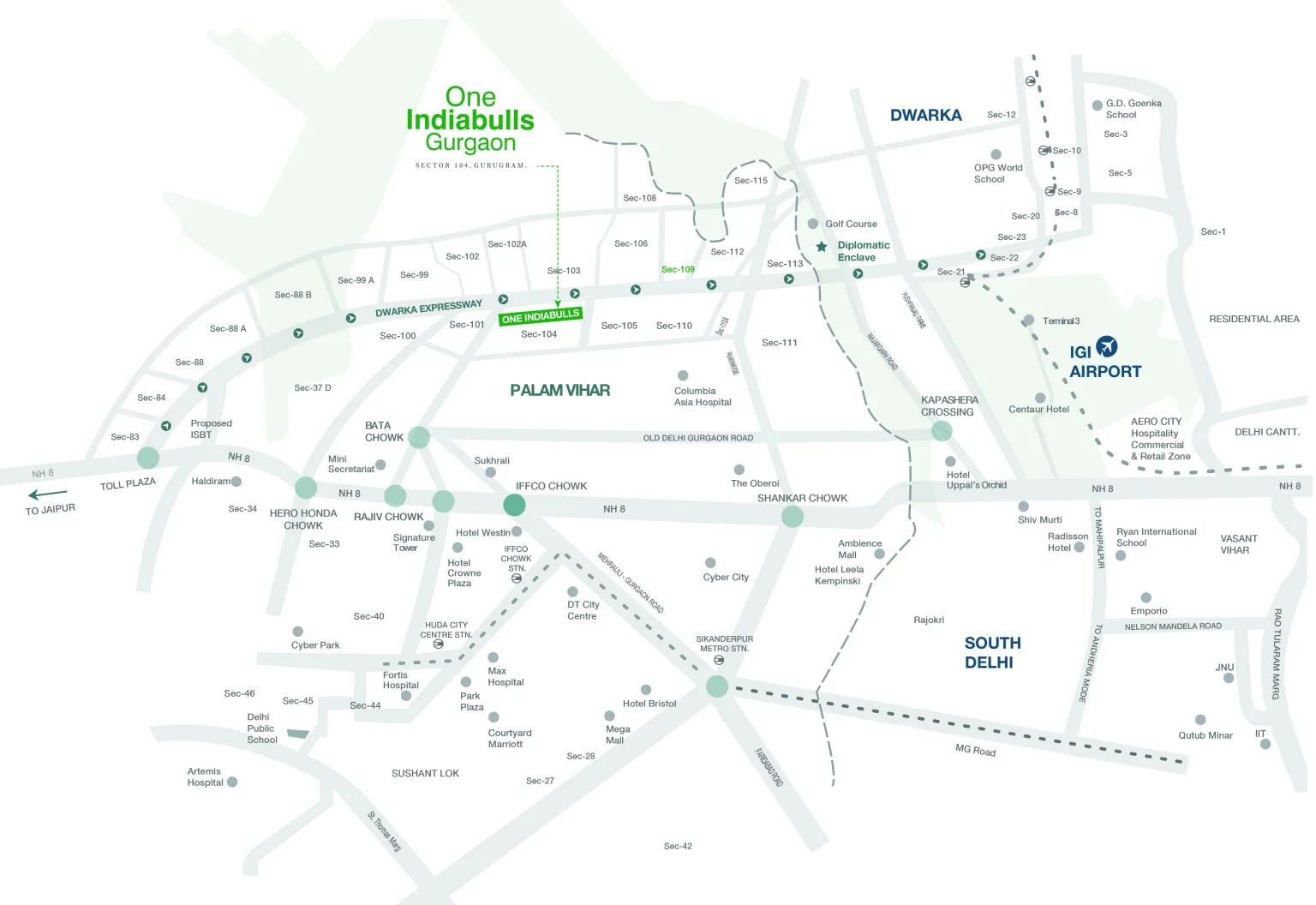 - Located on 150 mts wide Dwarka Expressway in Sector 104 Gurgaon.