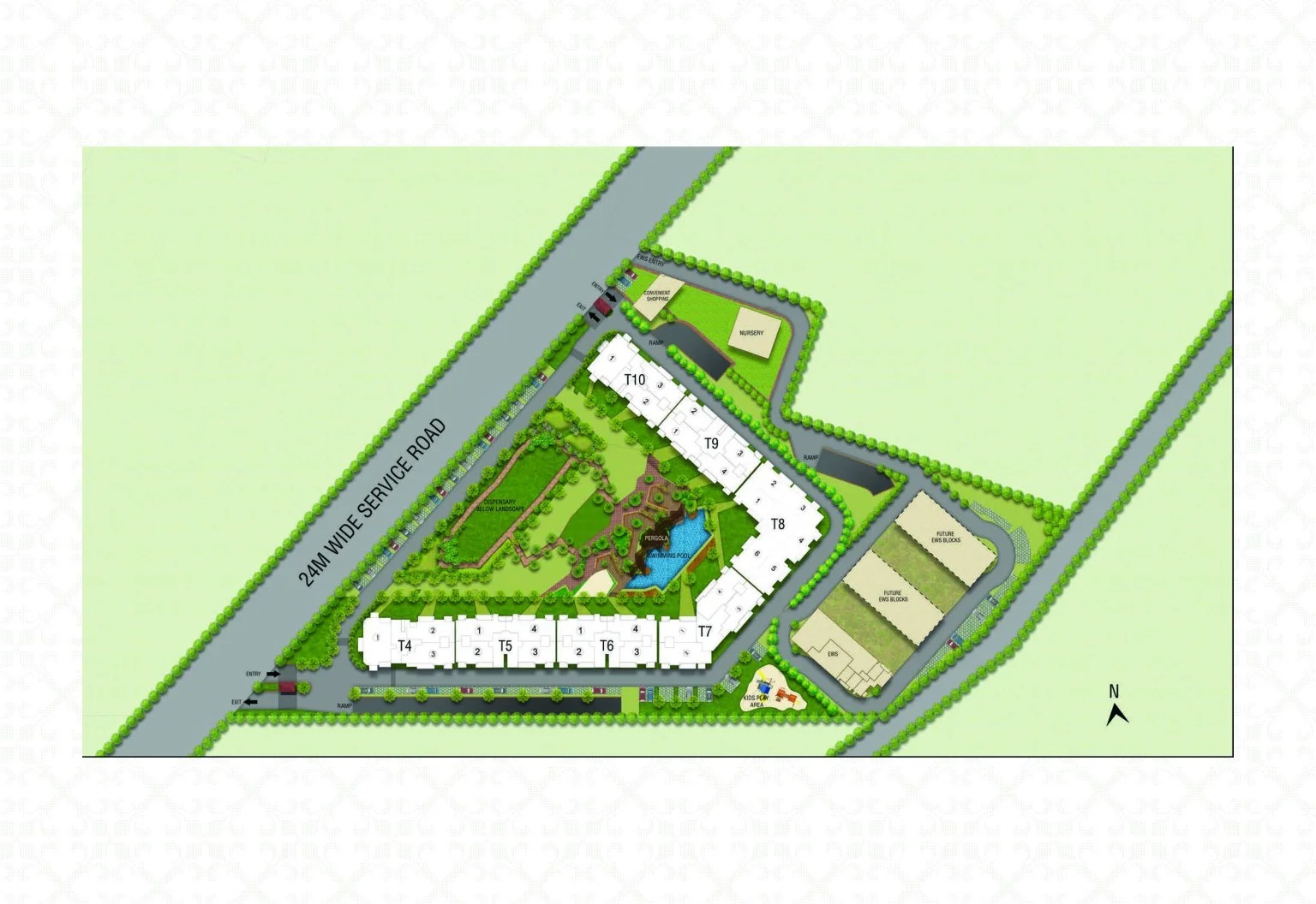 - Eco-friendly green environment, Central Green Space, Water bodies, Landscape Lawn.