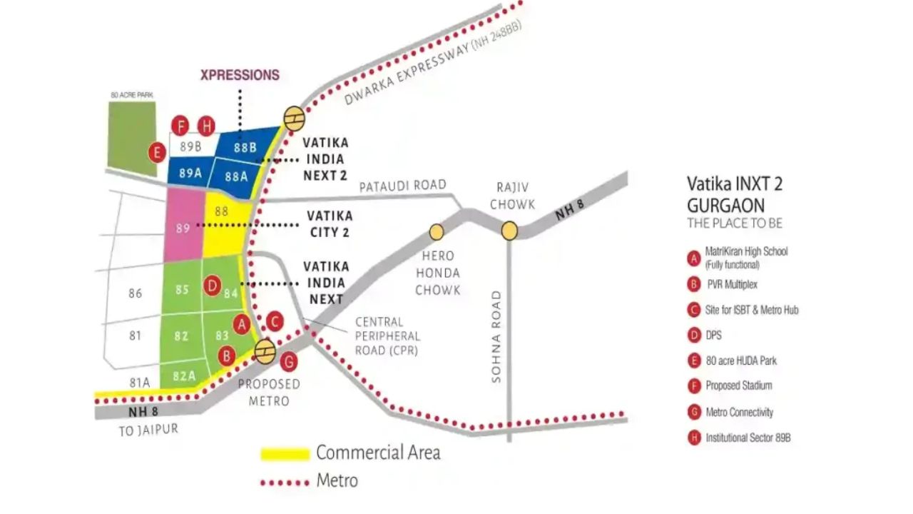 Located in Sector 88B, a part of 184 acre Vatika India Next 2, Gurgaon